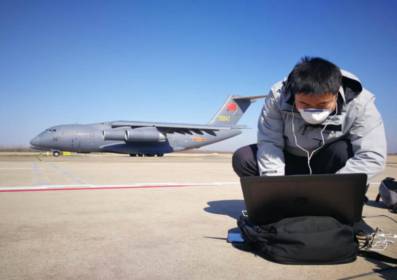 战“疫”面前,人民解放军展示“硬核力量”:军队派出多批医护人员全力支援武汉抗击新冠肺炎疫情,驻鄂部队抗击疫情运力支援队昼夜不停执行运输任务,中部战区调动直升机投送抗疫医疗物资,空军派出运-20大型运输机首次参加非战争军事行动……苏洲牢牢地把话筒与镜头对准军队医护人员和执勤的武警官兵,全方位报道人民军队威武之师的形象,为了尽快传回视频和资料,他经常席地而坐,以地为凳,以腿为桌。