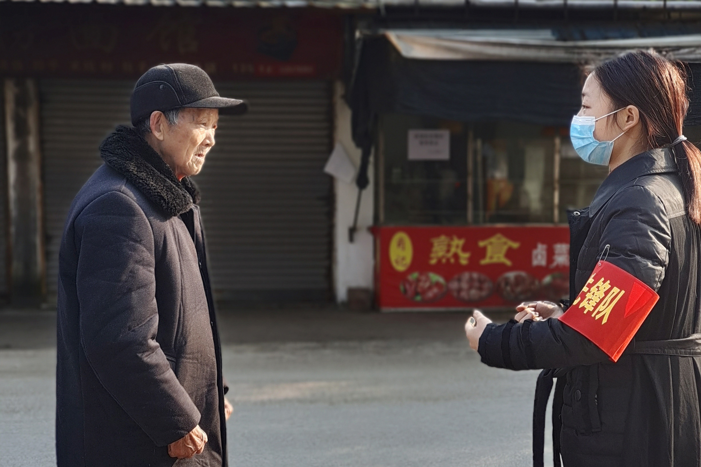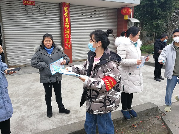 2月12日开始以来, 金小风老师在家乡绵竹市汉旺镇泉乐村积极投入到防疫知识的宣传工作中,每天上午,同社区其他志愿者走街串巷进行疫情防疫知识宣传,为村民解答和宣传疫情防疫措施。她说,作为一名教师、作为一名党员,希望可以尽自己一份绵薄之力共度疫情难关。