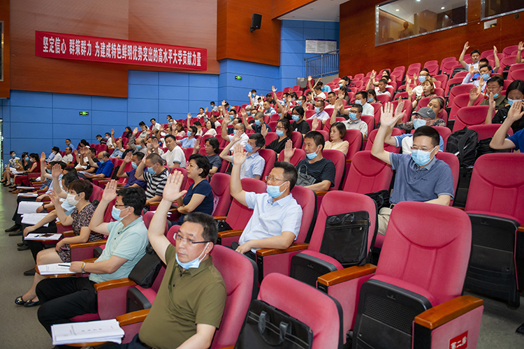 刁永锋作《凝聚力量,奋力拼搏,全面推进硕士学位授权单位建设》工作报告,系统总结学校新冠肺炎疫情防控和复学复课工作,全面回顾2019年学校的各项工作成绩,客观分析学校当前和今后发展面临的机遇和挑战,并部署2020年重点工作任务。