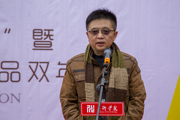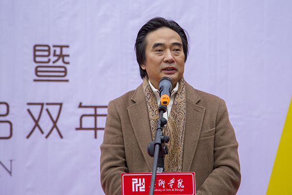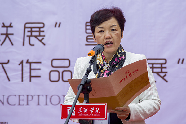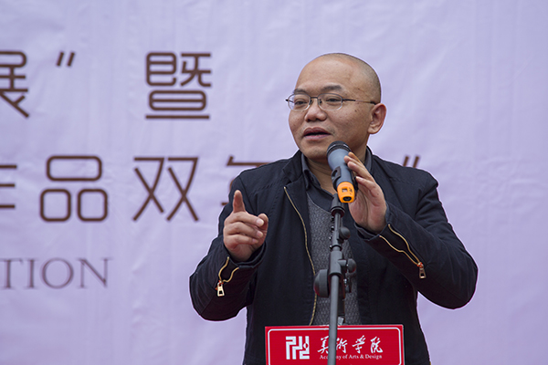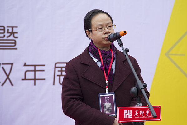 展览策展人、美术学院院长刘承川向嘉宾和现场师生介绍了本次双年展的策展情况。四川大学吴永强教授、重庆师范大学美术学院院长黄作林教授、四川大学美术学院院长黄宗贤教授分别上台讲话。