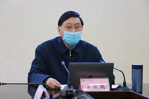 王成端在讲话中指出,当前,全国上下正万众一心、众志成城、团结奋战抗击新型冠状病毒感染的肺炎疫情。会议主要任务是学习贯彻习近平总书记关于坚决打赢疫情防控阻击战的重要指示精神,传达落实中央、省委和省委教育工委关于做好新型冠状病毒感染的肺炎疫情防控工作的部署要求,总结前期学校疫情防控工作开展情况,并对做好下一步疫情防控工作进行安排部署,进一步凝聚全校师生力量,同舟共济、科学防控,坚决打赢疫情防控阻击战。