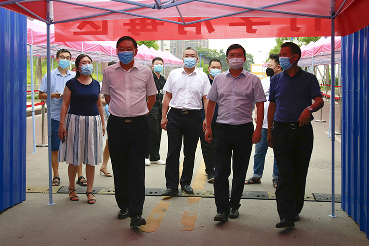 9月5日下午,党委书记王成端带领相关职能部门负责人对莲湖校区西大门、学生宿舍、食堂、校医院、教学楼等进行检查,要求要全面落实疫情防控责任,细化工作措施,做好校园环境卫生消杀,加强校园安全管理,热情有序地做好学生返校工作。要加强食堂安全卫生管理,大力宣传节约光荣、浪费可耻的思想观念,引导青年学生践行光盘行动。要精准掌握教职工健康状况,推动学校各项工作正常开展。要主动关心学生,尤其要重点关注疫情之后学生的心理状况,全面做好学生思想教育引领工作。