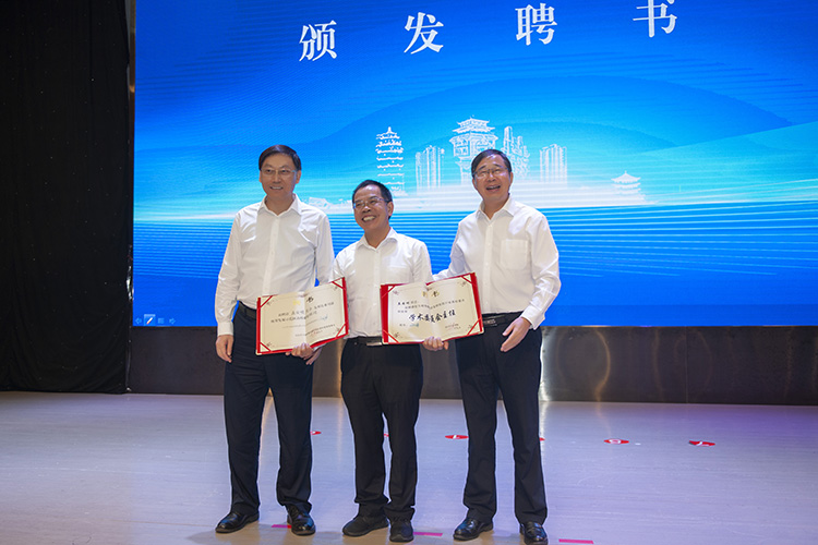 党委书记王成端、党委副书记、校长刁永锋为孟安明院士颁发聘书