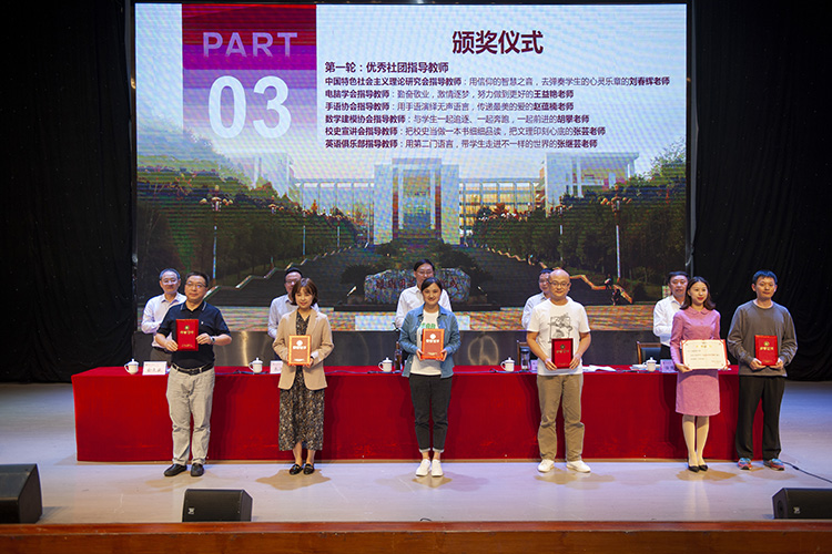 学校授予刘春辉等6名老师为“优秀社团指导教师”;授予“星行支教社”等13个社团为“星级社团”;授予肖亚婷等8名同学为“优秀社团会长”;授予李鑫等173名同学为“优秀社团干部”;授予谢晨曦等334名同学为“优秀社团会员”。