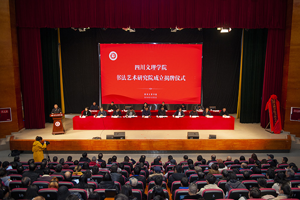 揭牌仪式上,党委书记王成端向客座教授戴跃、何开鑫、冯恩旭、马骏华颁发聘书。中国书法家协会草书委员会委员、四川省书法家协会原副主席、行草书专业委员会主任何开鑫代表客座教授发言。党委副书记侯忠明宣读成立书法艺术研究院文件,党委副书记、纪委书记张超宣读书法艺术研究院专兼职干部任职通知。
