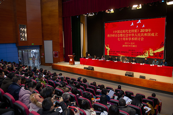 11月29日,全省高校《中国近现代史纲要》(以下简称《纲要》)课2019年教学研讨会在我校召开。党委副书记侯忠明出席会议并讲话,教研会会长、西南交通大学博士生导师何云庵教授,教研会副会长、四川警察学院副校长周长明教授等出席会议,副校长李壮成主持开幕式并作总结讲话。