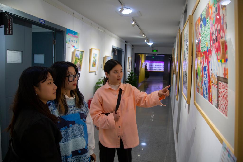 在艺术作品展区,110多幅国画、油画、版画、漆画、装饰画等绘画作品以现实生活为创造题材,表现内容丰富,形式多样,线条优美,构思新颖,栩栩如生,生动反映了新时代主题和当代大学生的审美意趣与价值取向。书法类作品行楷草隶书兼具,或行云流水,或潇洒飘逸,或苍劲有力,或大气磅礴,既继承了名家风范,又融入现代创新,展现了中华优秀文化瑰宝的时代韵味和当代审美价值。设计类、摄影类作品创意新颖,主题突出,时代感、现实感强烈,吸引了众多嘉宾驻足观赏。