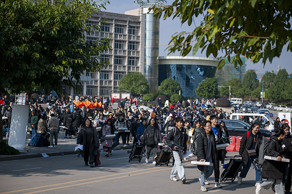 12月7日至8日,3680名考生在我校参加四川省2020年普通高等学校美术与设计类专业考试。在紧张的考试期间,有一群志愿者活跃在考场周围,他们为“困难”考生或提供咨询服务,或搀扶他们上下楼,或背他们进出考场,或为他们背画架……一幅幅温暖的画面感动了受助考生,也感动了场外的考生家长,他们以热情周到、温暖贴心的服务生动地展示了文理志愿者的良好形象。