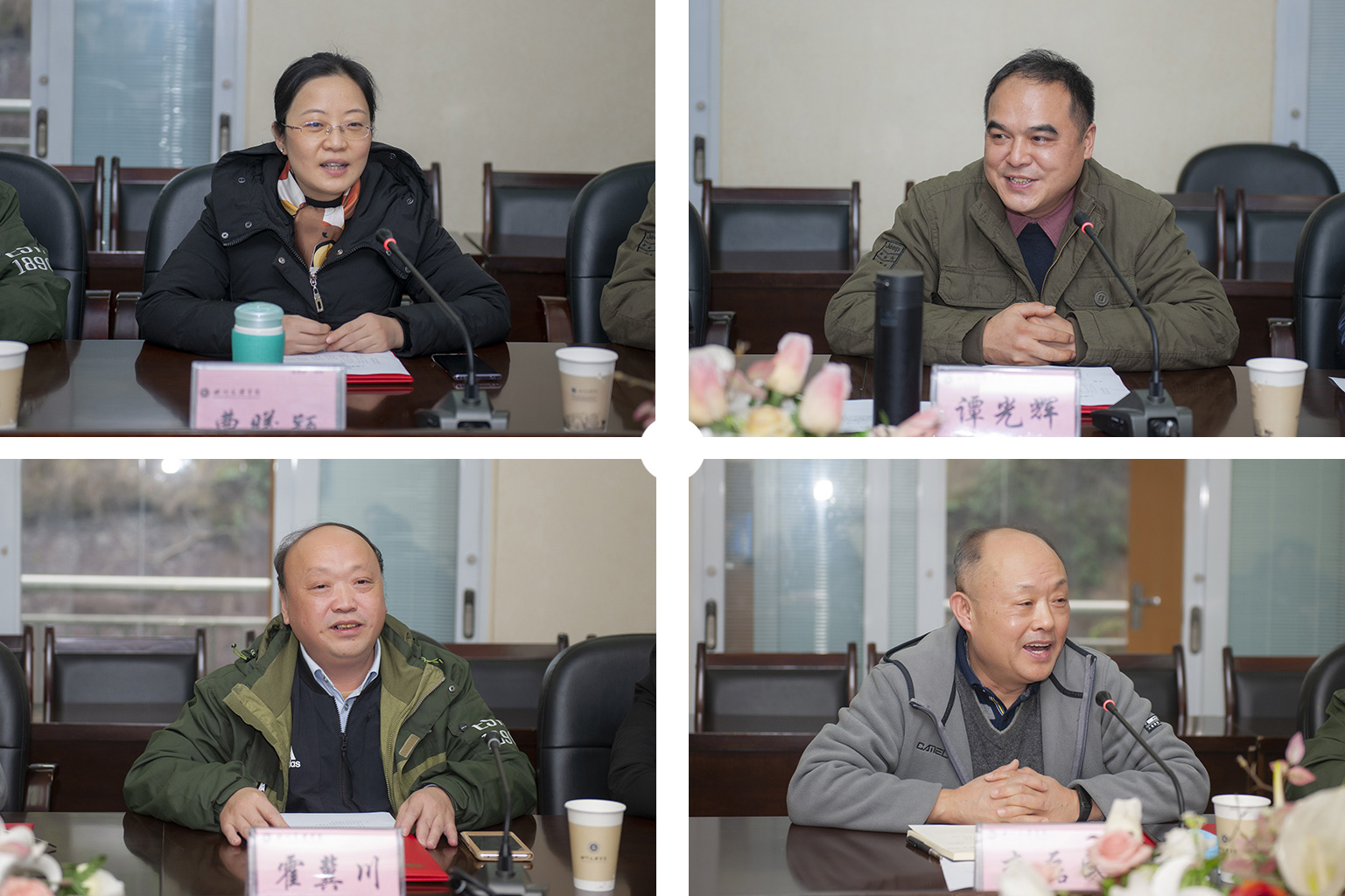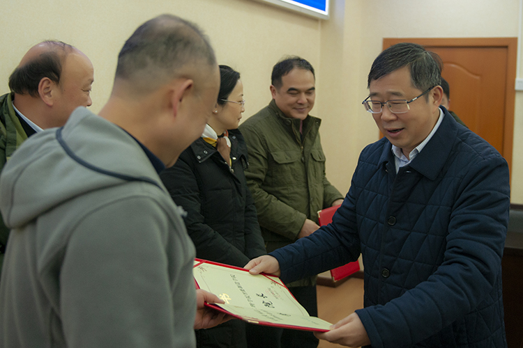 校长刁永锋为四川师范大学文学院副院长谭光辉、四川师范大学外国语学院院长曹曦颖、西南科技大学分析测试中心主任霍冀川、西南科技大学信息工程学院原院长李磊民颁发聘书,以上专家分别被聘任为文学与传播学院、外国语学院、化学化工学院、智能制造学院学术院长。