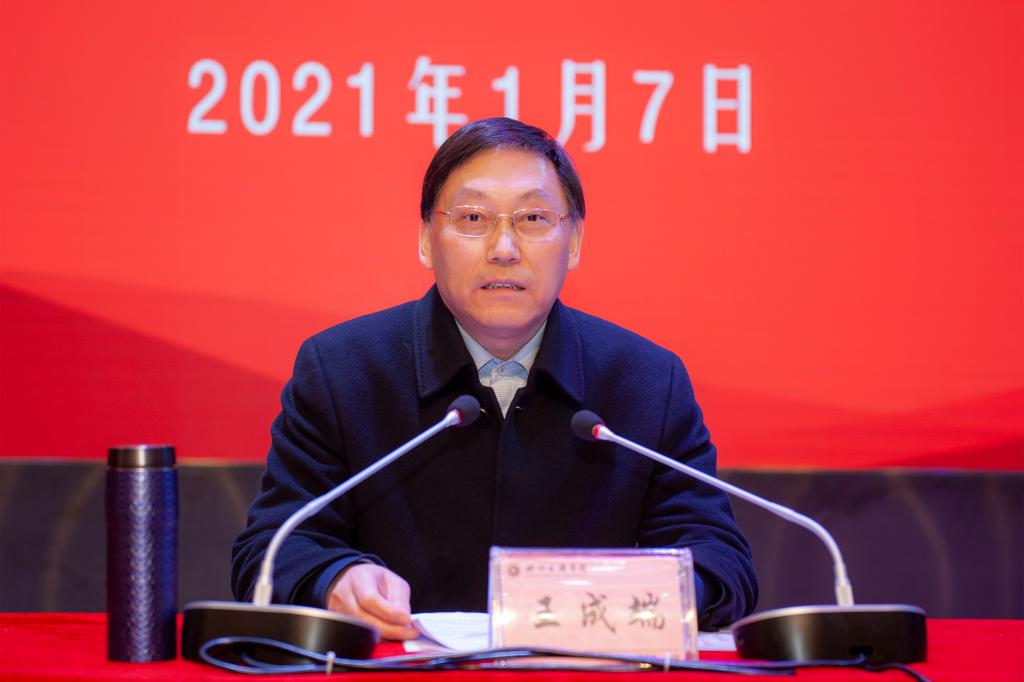 王成端指出,学校各党总支按照党委统一部署,较好地完成了2020年党建和思想政治工作任务,“硬性指标”扎实有力,展现出各党总支书记抓党建和思想政治工作的亮点特色,推动了学校基层党建工作整体水平不断提升。