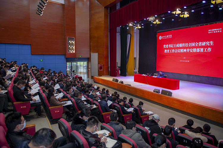 王成端就深刻学习领会习近平总书记重要讲话精神、贯彻落实全国全省研究生教育会议精神,加快推进硕士学位授权单位建设指出:学深悟透习近平总书记重要指示精神和全国全省研究生教育会议精神,正确把握战略导向、目标导向。要胸怀“两个大局”,深刻意识到加快提升研究生教育质量的战略紧迫性。要担负时代使命,把握目标导向,坚持中国共产党领导,坚持社会主义办学方向,坚持教育为人民服务、为中国共产党治国理政服务、为巩固和发展中国特色社会主义制度服务、为改革开放和社会主义现代化建设服务,把提升质量作为发展研究生教育的核心,把工作重心真正回归到人才培养的根本任务上。以改革创新精神抓落实,全面加快推进硕士学位授权单位建设进程。要对接地方需求,打造优势特色学科。在教育硕士、艺术硕士、资源与环境、电子与信息等专业硕士领域加强建设,主动对接地方需求,集中各方资源打造优势特色学科和方向。要共建共引共享,集聚教育科研资源。通过与地方共建共享实验室、新型科研平台等方式,形成“高校专家+地方专业人才+科技服务站+企业园区+实践教学基地”协调创新产业发展体系和人才培养模式,持续提升学校对地方发展的支撑力和贡献率。要多方筹集资源,争取联合培养;要坚持稳育引用服,构建卓越师资队伍;要坚持问题导向,创新研究生人才培养模式。在全面推进硕士学位授权单位建设中强化新担当、新作为。要深化思想认识,强化使命担当。以强烈的使命感和责任感,迎难而上,众志成城,举全校之力抓好硕士学位授权单位建设工作。要聚焦重点难点,狠抓落地落实。全面实施“重点学科建设”“人才团队建设”“重大项目培育”和“资源合作共建”四大工程,确保学校按期实现“2023年申硕”目标。要加强组织领导,凝聚强大合力。要牢固树立“全校一盘棋”思想,加强上下联动,强化协同作战,努力形成硕士学位授权单位建设工作的浓厚氛围和工作合力。