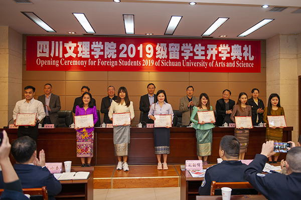王成端、刁永锋、徐晓宗等为获得四川省外国留学生政府奖学金、四川文理学院外国留学生奖学金获得者颁奖。