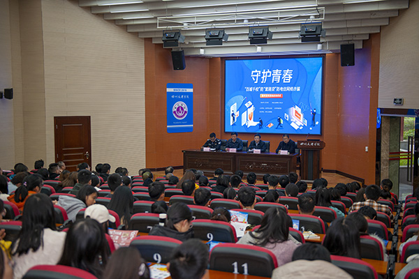 启动仪式结束后,四川省反诈宣传之星、市公安局刑侦支队侵财大队副大队长樊华林作防“套路贷”防电信网络诈骗知识讲座。他结合鲜活的案例和视频、图片等资料生动详细地介绍了近年来电信诈骗的发展趋势、呈现特点以及防范措施。大家纷纷表示,本次讲座契合实际,针对性强,进一步加深了对“套路贷”和电信网络诈骗的认识和了解,增强了自我保护意识。