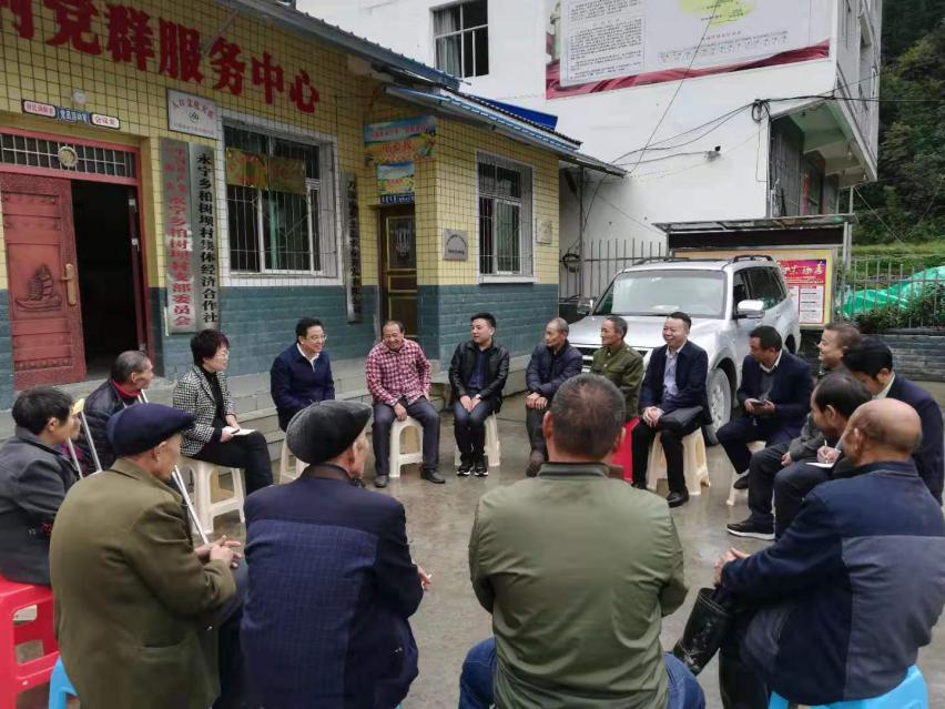 李壮成与学校12户结对帮扶对象在柏树坝村村委会召开院坝会,听取困难群众对扶贫帮扶工作的意见和建议,与困难群众面对面谈村务、唠家常,解答群众关心的现实问题,与他们探讨农村产业经济发展,展望未来生活的美好愿景。