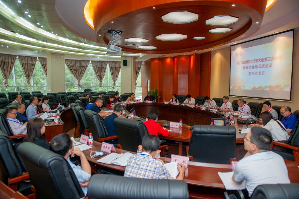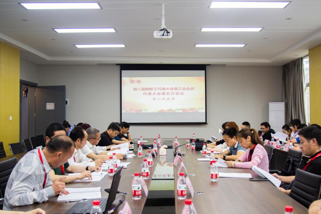 根据第二届教职工代表大会暨工会会员代表大会第五次会议日程安排,全体代表分六个团审议讨论《学校工作报告》《学校财务工作报告》《工会工作报告》《工会经费审查报告》《学校章程》,大家认真履行代表职责,纷纷围绕学校“十四五”事业发展规划和二〇三五年远景目标规划建言献策。