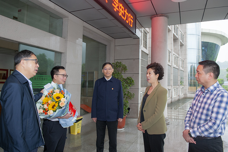 5月25日,市委常委、统战部长、市总工会主席胡杰在第五个“全国科技工作者日”前夕,到我校慰问科技工作者代表陈光平博士。党委书记王成端,党委副书记、校长刁永锋代表学校对市委、市政府的关心慰问表示感谢。