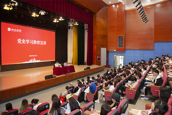 为提高全省教育系统党史学习教育的覆盖面,广泛营造“学党史、悟思想、办实事、开新局”的浓厚氛围,6月4日,由省委教育工委组建的党史宣讲团来我校作党史宣讲,党委副书记侯忠明主持宣讲会,党委宣传部、团委、学生工作部、招生就业处等职能部门及二级学院师生参加宣讲会。