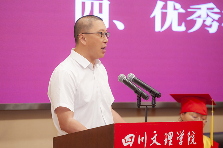 党委副书记侯忠明宣读“四川文理学院2021届学生毕业与授位决定”。