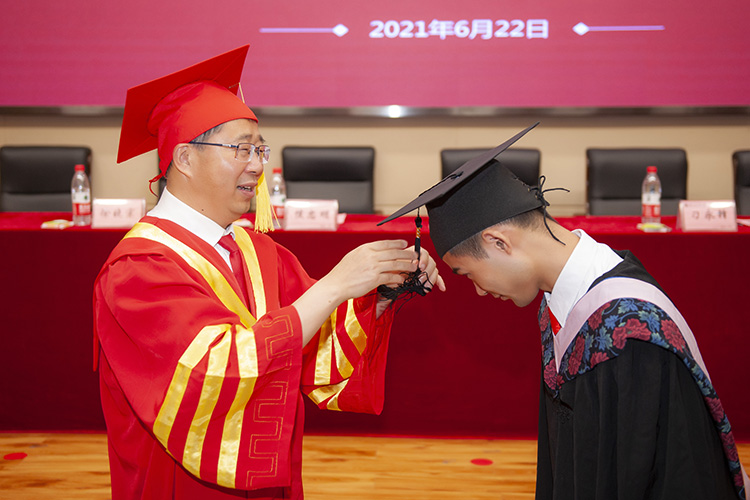 党委副书记、校长刁永锋为毕业生拨穗授位