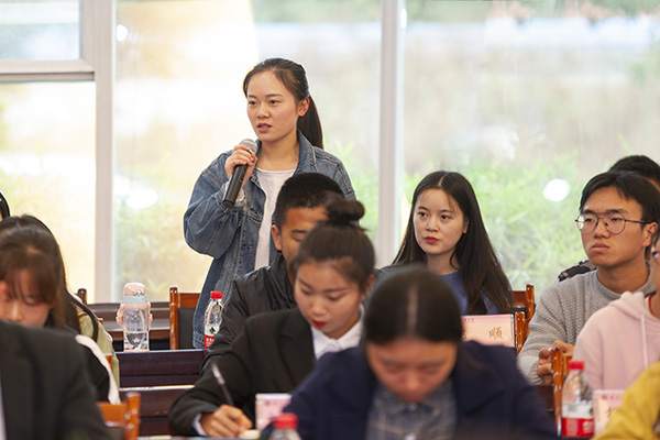 交流会上,同学们围绕思想政治教育、教育教学、成长成才、管理服务、环境育人等方面进行现场提问,并结合自己的学习生活实际,从各自不同的角度谈认识体会和提意见建议。