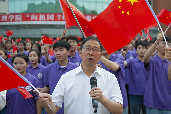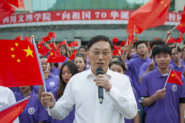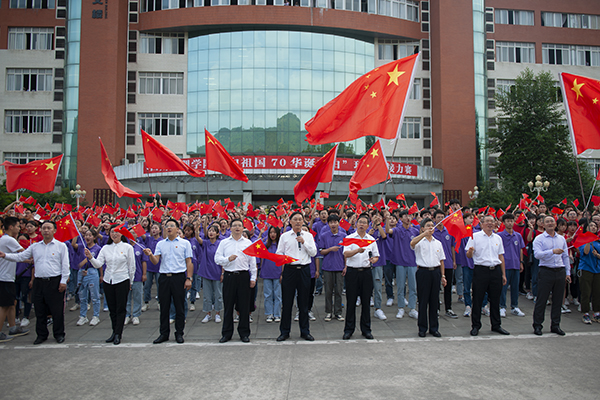 “我和我的祖国,一刻也不能分割……”在莲湖校区博文楼前的广场上,600余名师生列队高歌《我和我的祖国》,师生一边引吭高歌一边挥舞国旗,歌声与国旗交相辉映,表达着师生对祖国的拳拳赤子之情,合唱由党委书记王成端和党委副书记、校长刁永锋领唱。党委副书记、工会主席侯忠明主持此次活动,省纪委监委驻四川文理学院纪检监察组组长、党委副书记、纪委书记张超,副校长李壮成、徐晓宗、邓杰及部分职能部门负责人和二级学院师生代表参加启动式。