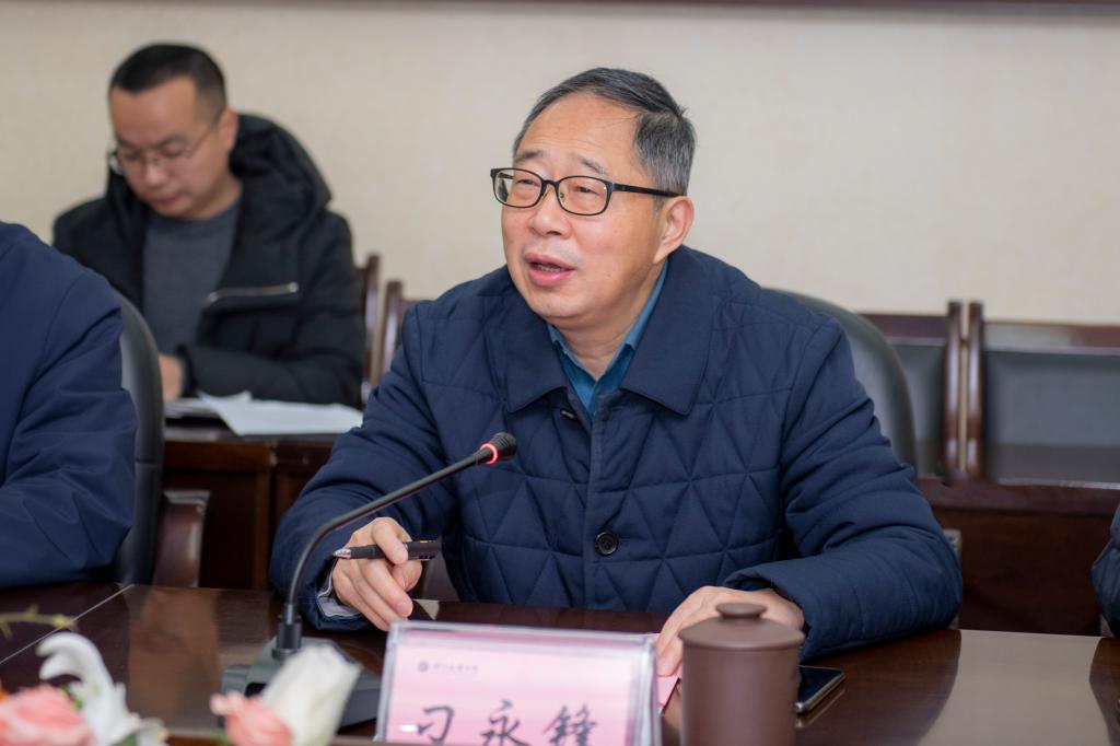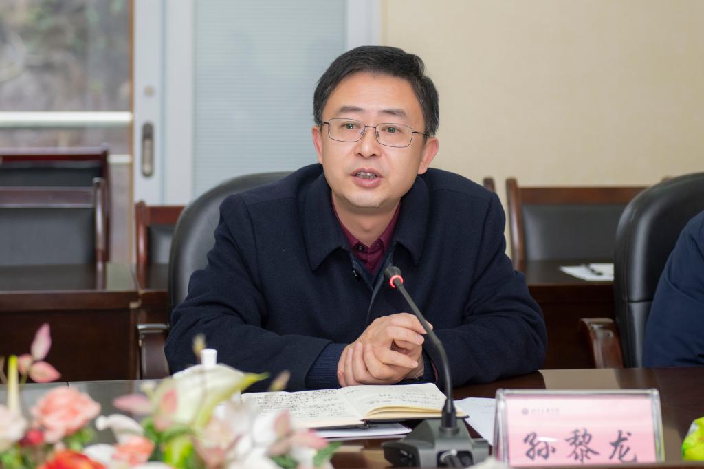 刁永锋向孙黎龙一行莅临我校表示热烈的欢迎。他指出,近年来学校紧紧围绕“建设特色鲜明优势突出的高水平应用型大学”建设目标,按照 “三步走”发展战略和“1234”总体部署和要求,以八大学科专业群建设为引领,不断繁荣哲学社会科学工作,取得了较好成绩。他表示,此次哲社基地的设立,是构建全市“大社科”格局的重要举措。学校将一如既往地在研究力量、运行保障、课题经费等方面全力支持各社科研究基地开展工作,努力使社科基地在哲学社会科学的繁荣发展上有所作为。