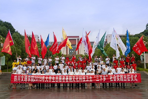 此前,各二级学院和相关职能部门按照学校《大学生志愿者暑期文化科技卫生“三下乡”社会实践活动活动的通知》要求,精心组织,踊跃申报,有23个团队获得立项,已陆续奔赴四川、贵州等地开展实践锻炼,团队成员达300余人,他们将围绕国情调研、政策宣讲、推普脱贫、医疗健康、科技扶贫等实践主题,把爱国情、强国志、报国行自觉融入新时代追梦征程为决胜全面建成小康社会、夺取新时代中国特色社会主义伟大胜利,为实现中华民族伟大复兴的中国梦汇聚磅礴青春力量。