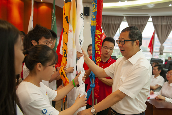 校长刁永锋为实践团队授旗