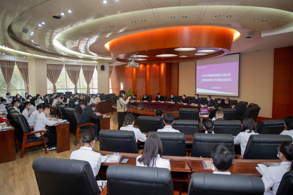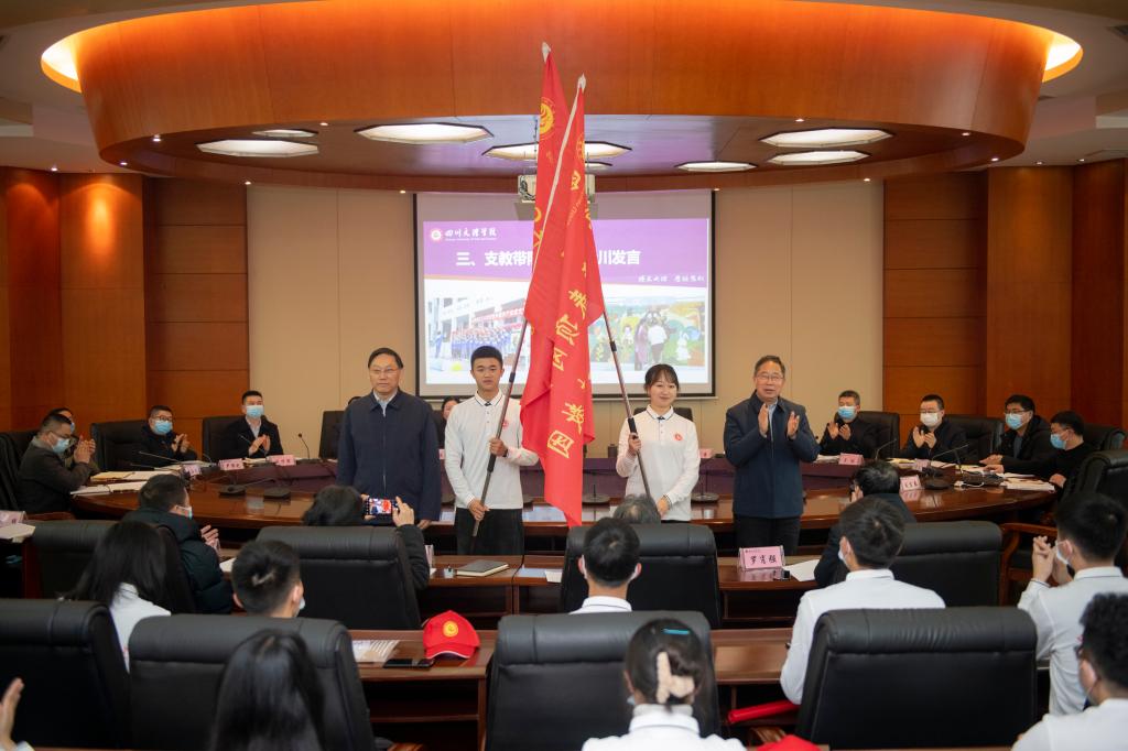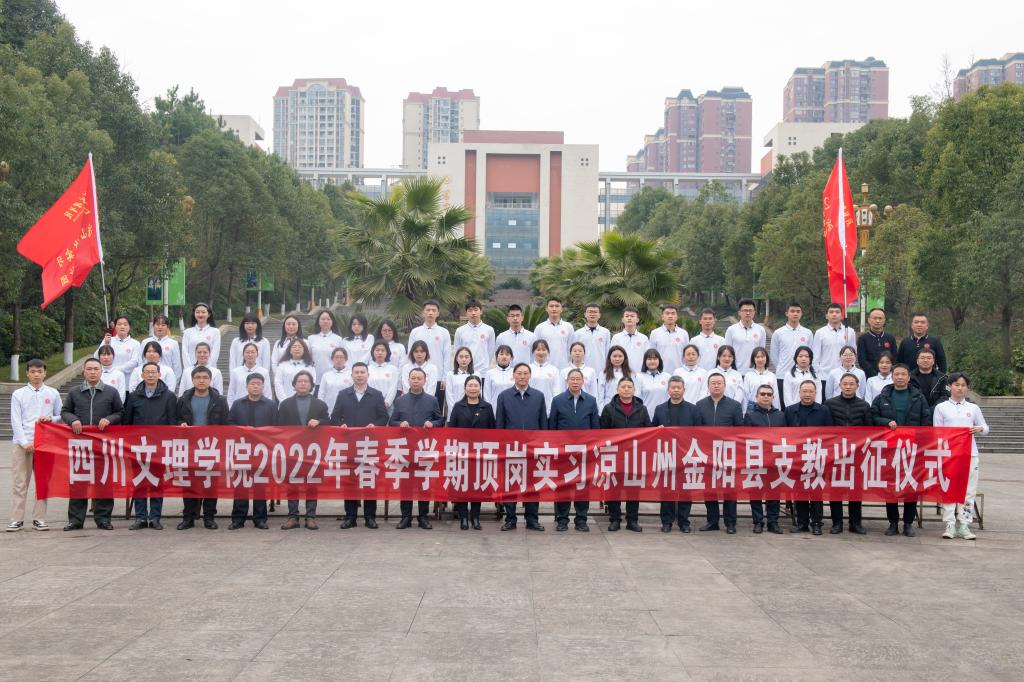 2月25日,学校在莲湖校区举行2022年春季赴凉山州金阳县顶岗支教工作会暨出征仪式。党委书记王成端、党委副书记、校长刁永锋出席出征仪式并为支教团授旗。出征仪式由副校长程碧英主持。