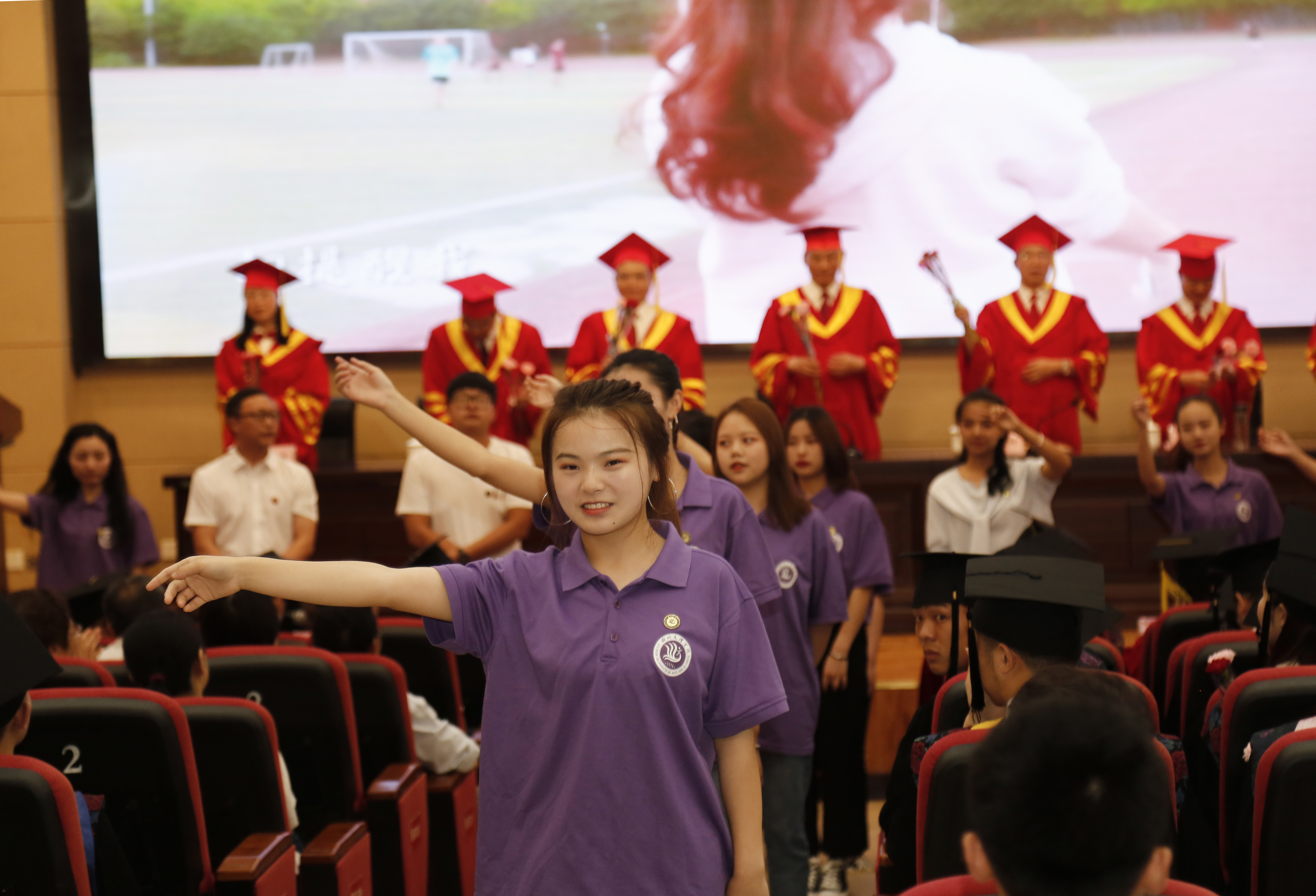 授位仪式结束后,现场音乐响起,即将退休的赵英老师和团委书记于贵老师带领同学们一起深情地唱起《祝你一路顺风》,全场师生齐声伴唱,热泪盈眶。在久久不息的掌声中结束了毕业典礼。