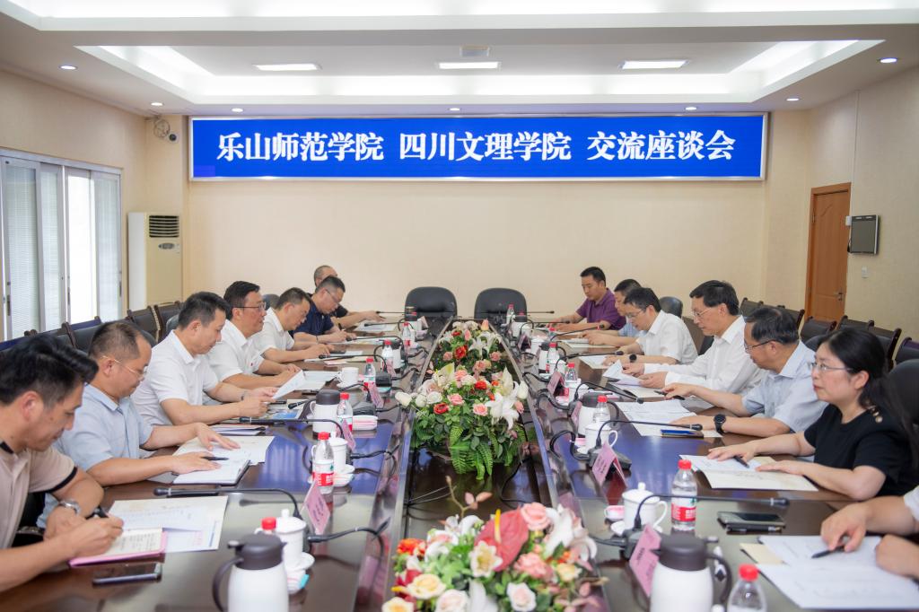 刁永锋介绍了学校基本情况、办学定位、学科专业群建设、校地合作等情况。他说,乐山师范学院与四川文理学院交流比较密切,在办学历史、办学方向、办学基础等许多方面有相似之处,两校有合作的基础。乐山师范学院学科门类齐全,办学条件和师资力量雄厚,学校建设内涵丰富、科研成果丰硕,值得我们深入学习。希望两校结伴而行,加强沟通与交流,让各自的办学特色进一步增强。
