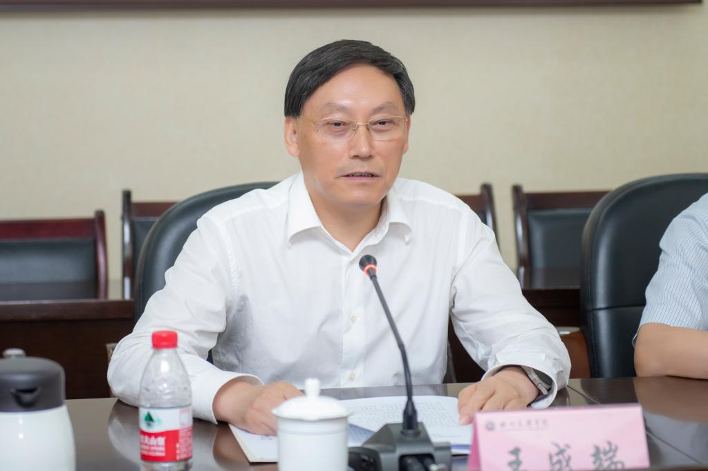 王成端对胡丹、刘进一行的到来表示热烈欢迎。他分享了校地合作、新校区建设、校地人才交流及申硕工作等方面的情况和做法。他说,学校与地方政府要紧密沟通与协调,共同促进学校高质量发展;要与企业加强合作,多方筹集科研和办学经费;四川文理学院和乐山师范学院要加强申硕、示范专业建设工作的交流与合作,要加强科研协同创新、资源共享,联合申报重大科研项目。他希望,两校之间的友谊与合作更加密切、更加深入。
