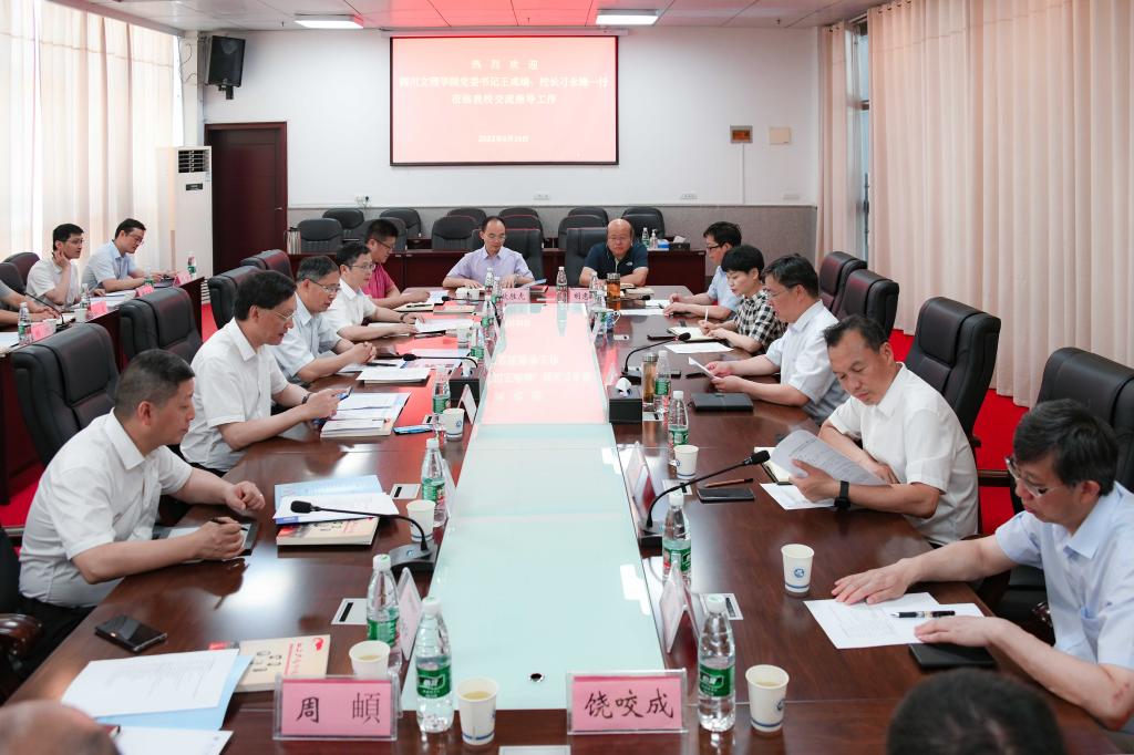 在安康学院考察学习时,王成端和刁永锋一行与安康学院党委书记丁巨涛、校长钟生海就乡村振兴、学科专业建设、研究生联合培养、联盟工作等作了深入交流。双方一致认为,要进一步加强合作,互相支持,形成合力,要以万达开川渝统筹发展示范区国家战略为契机,携手并进,共同争取政策支持。