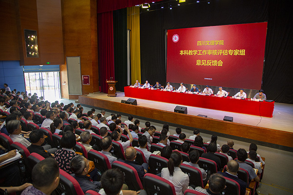 4月25日下午,我校本科教学工作审核评估专家组意见反馈会在莲湖校区艺术传媒大楼多功能厅举行。