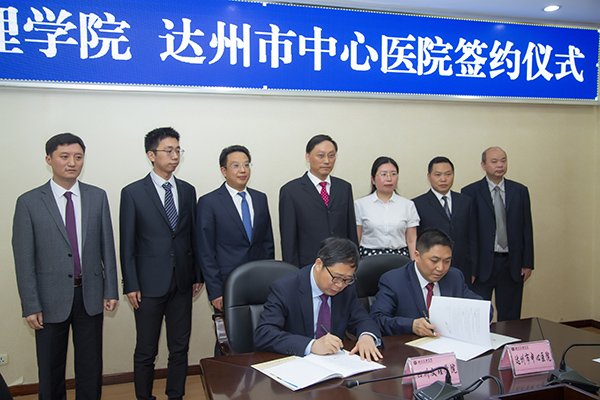 5月9日,学校党委副书记、校长刁永锋与达州市中心医院院长曾凡伟代表双方签署合作协议。学校党委书记王成端,达州市中心医院副院长曾凡新、科教部副主任王枰稀出席签约仪式,副校长李壮成主持签约仪式。