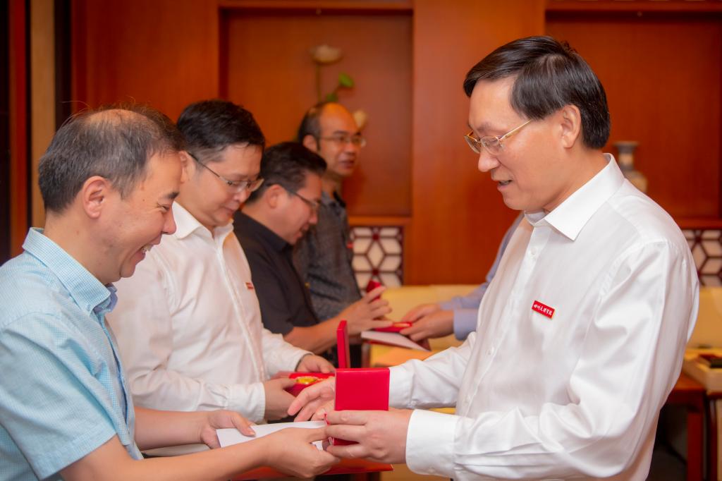 座谈会上,王成端、刁永锋亲切慰问2022年荣休教师和从事高教30周年教师代表并发放慰问品,对老师们爱校如家,三十年如一日甘为人梯、默默耕耘的无私奉献精神给予了高度赞扬。王成端指出,学校各项事业发展取得的显著成绩,凝聚着你们的心血和汗水,感谢你们把最美好的青春年华奉献给了党的教育事业和学校的建设发展。