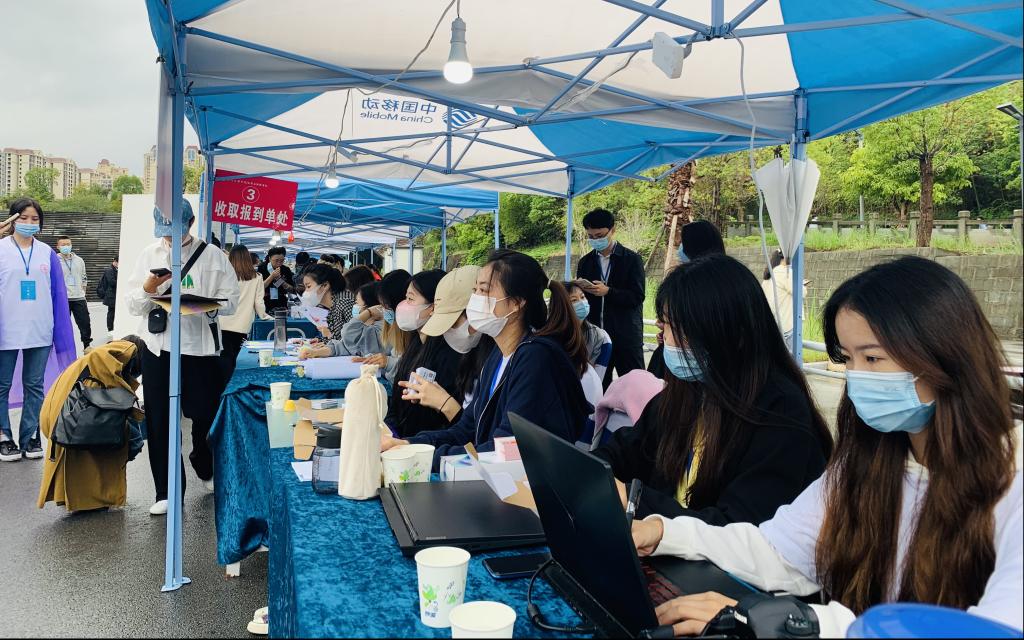 蒙蒙细雨中,各二级学院的迎新帐篷一字排开,整个体育馆热闹非凡又井然有序。在志愿者的引导下,新同学们准确找到自己的学院,并有序排队办理登记报到、宿舍分配、校园卡领取等入学手续。对于无法筹措学费的新生,学生资助中心前的“绿色通道”一早就开放,等待新生到来。新生可以直接在现场的“绿色通道”申请助学贷款,顺利完成注册手续。“绿色通道”的工作人员现场为20多名学生办理了贷款相关审核手续,线上为1000多名新生完成了手续的审核。需要线下缴费和查询相关数据的学生也可以在计划财务处和招生就业处的临时点缴费和查询。
