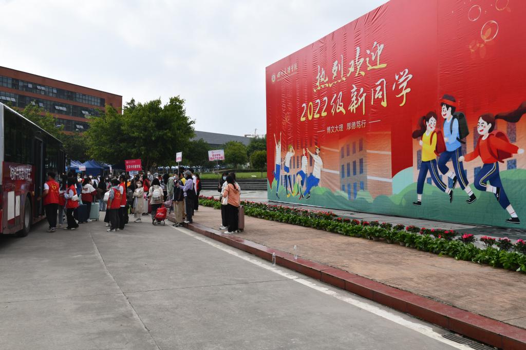 志愿者们早早来到了火车站、汽车站,迫切地想迎到新同学。他们注视着车站的出口,高高地举着醒目的欢迎牌。大巴车也贴上了显眼的欢迎标语,司机把迎新车辆里里外外打扫得干净整洁,防疫消毒措施安排得妥妥当当,他们时刻准备着满载新同学安全地回到学校。