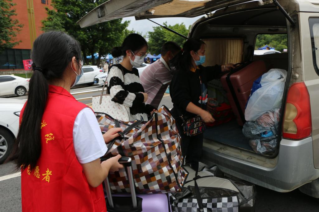 一张张陌生又熟悉的面孔迎着接站志愿者们走来。志愿者们接过大大小小的行李,热情温暖地问候着学生和家长,认真查验新生的24小时内核酸检测阴性证明和健康码,测量体温、行李消杀、登记信息,有序地引导同学们上车,这让新同学们忘记了旅途的劳顿,顿时兴奋起来了。有新生家长说:“看到你们,我就安心了。”此次接站工作由文学与传播学院和政法学院的师生担任。