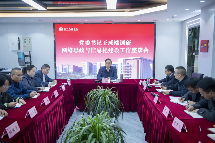 10月7日上午,党委书记王成端前往党委互联网思想政治工作部和信息化建设与服务中心专题调研网络思政和信息化建设工作,并主持召开座谈会。党委副书记侯忠明、党委(校)办公室主任陈官章陪同调研。党委互联网思想政治工作部和信息化建设与服务中心全体教职工参加座谈会。