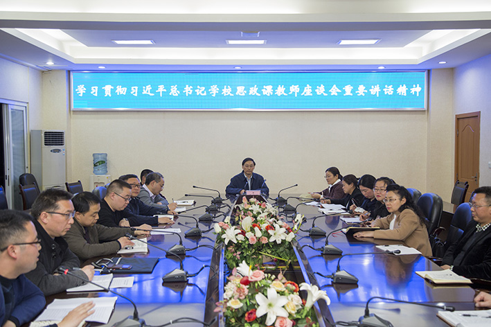 我校思政课教师第一时间通过电视、微信、微博和“学习强国”等途径学习习近平总书记重要讲话精神并展开热烈讨论。3月20日,学校召开专题会议深入学习贯彻习总书记重要讲话精神,并就思政课课程建设、教师队伍建设和如何开好和讲好思政课展开研讨,党委书记王成端教授出席会议并讲话。