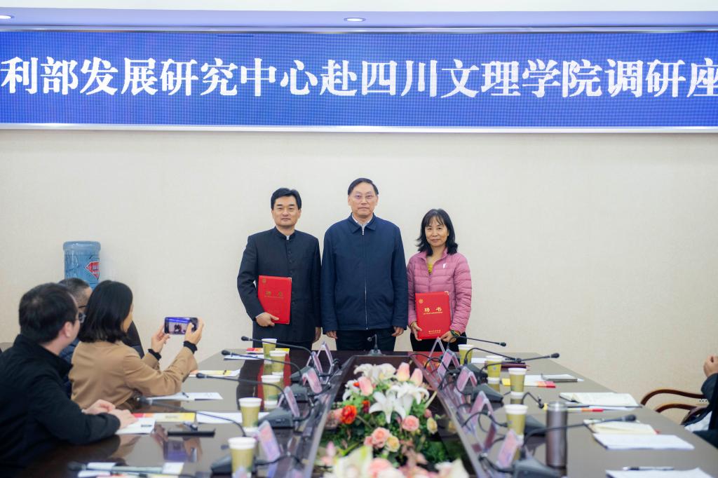吴强一行参观了学校校史馆和学校服务达州及区域经济社会发展科研平台展,详细了解了学校的历史沿革和文化底蕴,以及在学科平台建设、人才培养、科研创新、社会服务等方面取得的成绩。他们对学校的聘任表示感谢,表示一定热心、热情地为达州市的乡村振兴与学校的发展贡献力量。吴强说,水利部发展研究中心有着高端智库建设的人才优势,同时也有着寻求理论与实践结合的迫切需求,希望双方尽快形成合作机制,以项目为抓手,促进合作事项落实落地,促使合作实效年年递增,以成果切实服务区域经济社会发展。