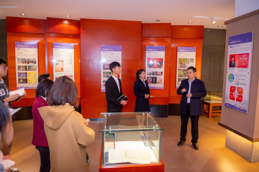 11月18日,党委副书记、校长侯忠明教授来到学校档案馆、校史馆,调研学校档案的收集、整理、保存和运用情况,了解校史馆展陈与开放情况,并与校史学生宣讲团全体成员座谈交流,畅谈党的二十大精神学习体会。校办公室、信息化服务中心负责人等陪同调研;档案馆负责人汇报近年来档案管理、校史宣讲工作开展情况。
