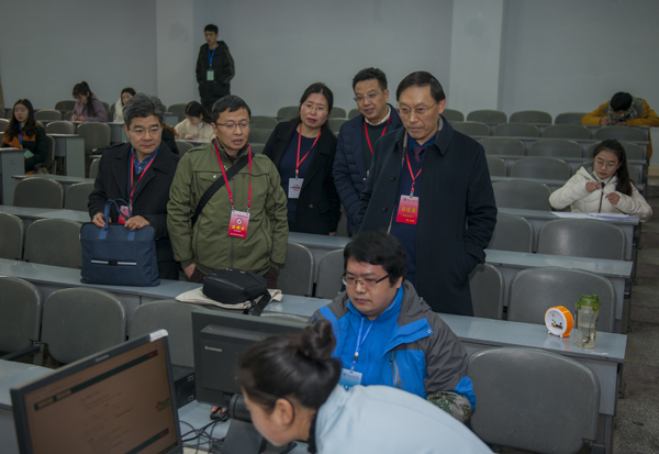 徐强一行巡视了考点考务中心,对候考室、抽题室、备课室、面试室、视频监控中心等进行了逐一查看,认真听取了考点主考有关考试组织与保障工作的汇报,详细了解了面试试题保密、考务管理、技术保障等工作的重点与难点。徐强对我校考点的面试组织工作、考试运行和考试环境给予了高度肯定,并对进一步做好中小学教师资格考试面试工作提出了建议和明确要求。
