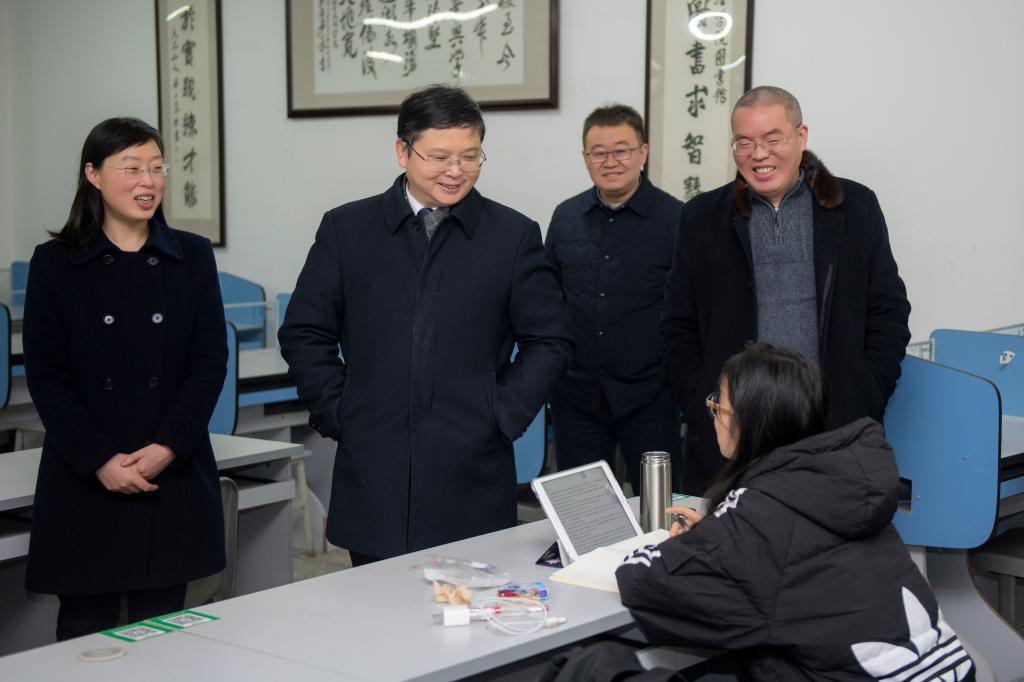 在图书馆阅览室,看到还有学生在认真学习,侯忠明感到非常高兴并与同学们亲切交谈,了解他们在校学习生活情况,关心他们的学业,希望他们取得学业上的进步,在假期要做好个人防护并与家人随时保持沟通联系,在春节期间要通过电话、视频向家人表达美好慰问和祝福。侯忠明要求,相关部门一定要做好假期留校学生的安全教育和管理工作,以及后勤保障和服务工作,确保他们能度过平安、愉快的假期,尤其在春节期间,要让留校学生感受到学校的关怀和温暖。