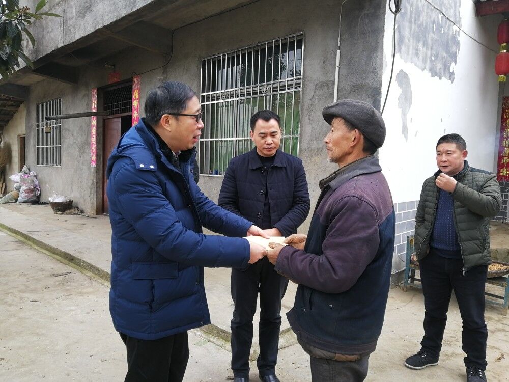 从万源市区前往贫困村的道路正在升级改造,加上连日的雨雪天气,道路泥泞坎坷,经过一路颠簸,终于到达柏树坝村。到村后,各位领导不顾疲劳,在驻村干部和当地干部的带领下分头入户看望贫困群众。党委书记王成端、党委副书记侯忠明、党委副书记、纪委书记张超、副校长朱兴华一行分别来到贫困户刘德明、刘德琼、晁恒忠、张云彬家里,察看他们的衣、食、住、用,亲切询问他们的生产生活状况,详细了解他们存在的困难。王成端说:“学校一直心系贫困村,惦记着各位乡亲,在新春佳节来临之际,学校班子成员一起过来看望大家,给大家拜个早年,祝大家过一个祥和快乐的春节。”副校长李壮成、徐晓宗、邓杰也分别来到贫困户张万平、吴开金、马大友家里了解他们的生产生活情况,并给他们送去节日慰问金。