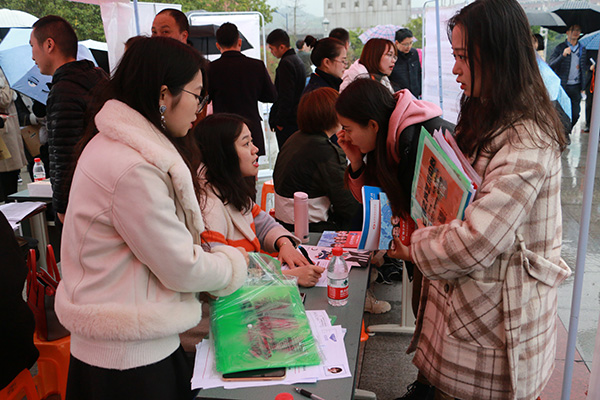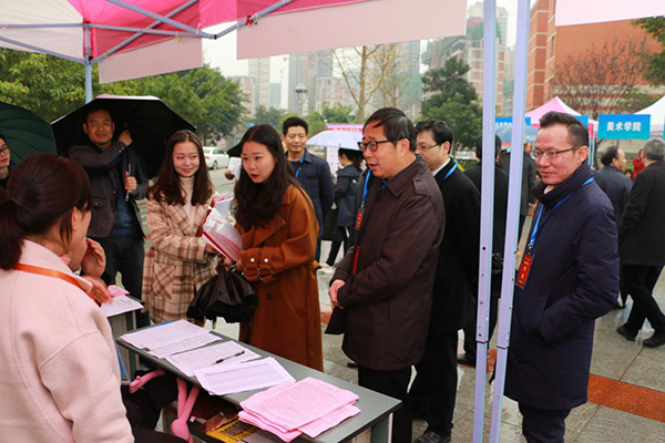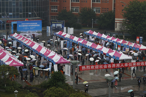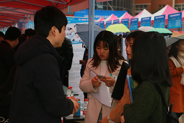 11月27日上午,我校莲湖校区音乐广场上人头攒动、秩序井然,2019届毕业生秋季校园双选会在此举行,有很多像孔德林这样的同学前来寻找就业岗位和信息。中国铁路局、新疆教育局、深圳创维重庆分公司等来自全国11个省市的240余家用人单位为我校毕业生带来了5000余个就业岗位。