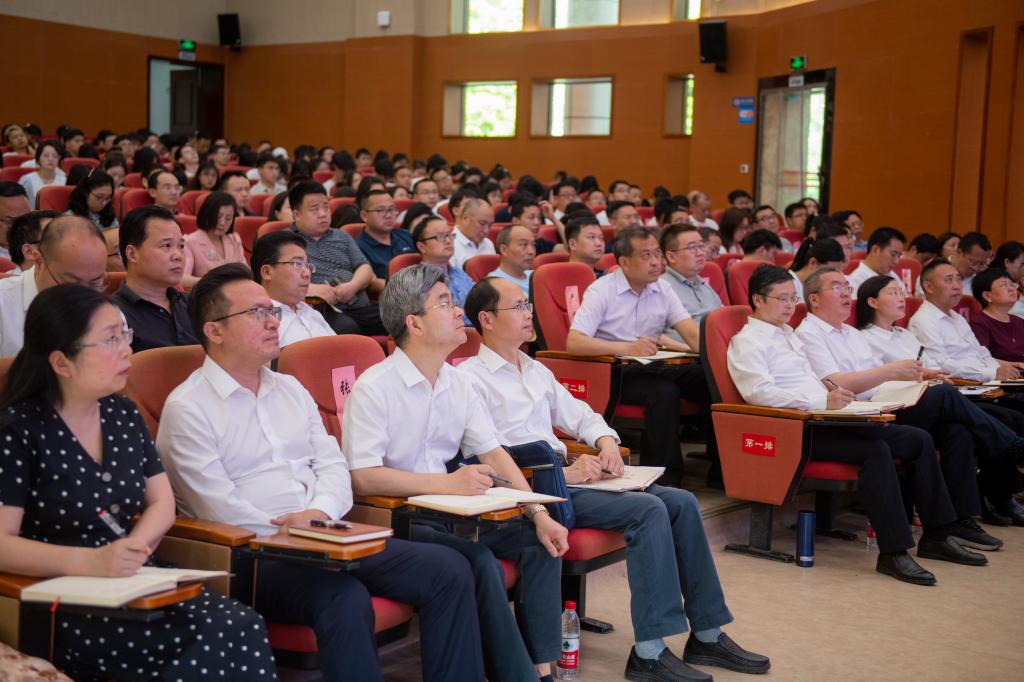 党委副书记、校长侯忠明,党委副书记、纪委书记张超,党委常委、副校长徐晓宗、朱兴华、邓杰、程碧英及全校副处级以上干部,各二级党委、党总支师生党员代表等聆听辅导报告。
