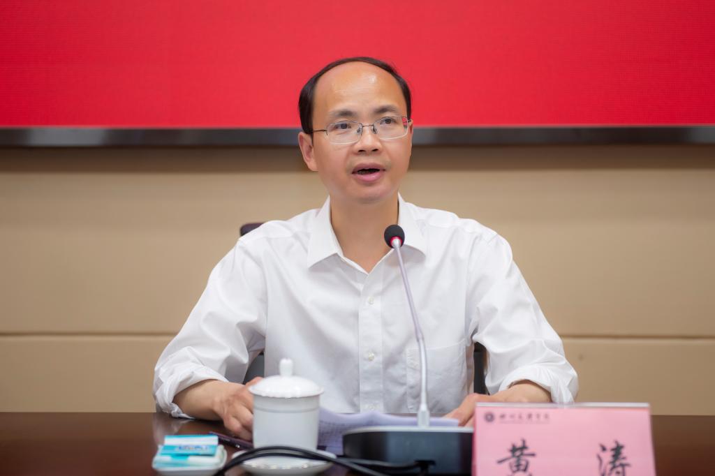黄涛指出,各级党组织和广大党员干部要以习近平总书记在中央主题教育工作会议上的重要讲话精神为根本遵循,提高政治站位推动落实,更加自觉深刻领悟“两个确立”的决定性意义,增强“四个意识”、坚定“四个自信”、做到“两个维护”,在思想上政治上行动上同以习近平同志为核心的党中央保持高度一致;准确理解、全面把握“学思想、强党性、重实践、建新功”的总要求,将其贯穿主题教育全过程;围绕根本任务推动落实,坚持学思用贯通、知信行统一,把习近平新时代中国特色社会主义思想转化为坚定理想、锤炼党性、指导实践、推动工作的强大力量;紧盯具体目标推动落实,坚持目标导向和问题导向相结合,以解决问题为抓手,有的放矢、精准发力推动各项任务落实落地;贯通重点措施推动落实,把理论学习、调查研究、推动发展、检视整改、建章立制贯通起来,有机融合、一体推进,边学边查边改,努力把每项工作做扎实、做到位。要以主题教育为契机,进一步梳理、学习、贯彻习近平总书记关于高等教育工作的重要论述,自觉对标对表,找准推进工作的切入点、解决问题的着力点,深入开展调查研究、抓实抓好问题整改,努力在贯彻落实上取得新进展、新成效。