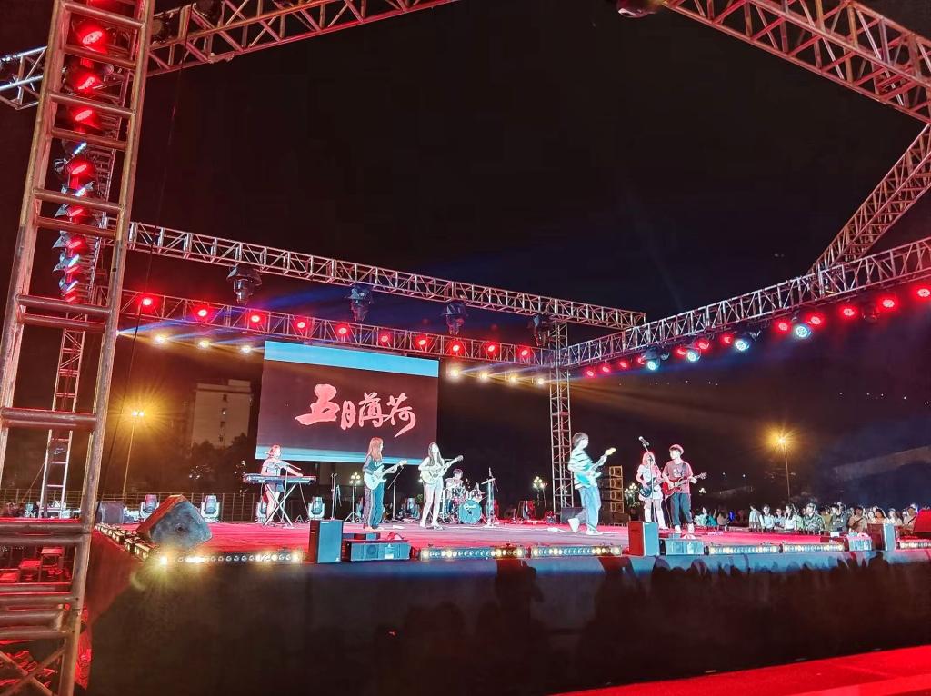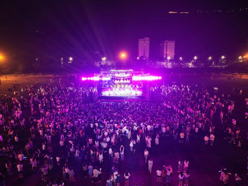 随着夜幕降临,表演正式开始,年轻的脸庞欢聚操场,用对音乐节的憧憬和呐喊激活校园文化,说唱、舞蹈、演唱、走秀等表演形式多样、流派纷呈。其中《流行舞串烧》《民族舞串烧》等各具特色的舞蹈表演给观众带来一场视觉盛宴,洋溢着热情奔放的青春活力,从群青乐队《再见威尔逊》到Negroni乐队《8+8+8》、五月薄荷乐队《温蒂公主的侍卫》,再到九点半乐队《想去海边》、路野乐队《一万次悲伤》,每一个音符都谱写出悸动的乐章,每一个旋律都编织出音乐的梦想。他们用歌声传递心声,用旋律代替话语。